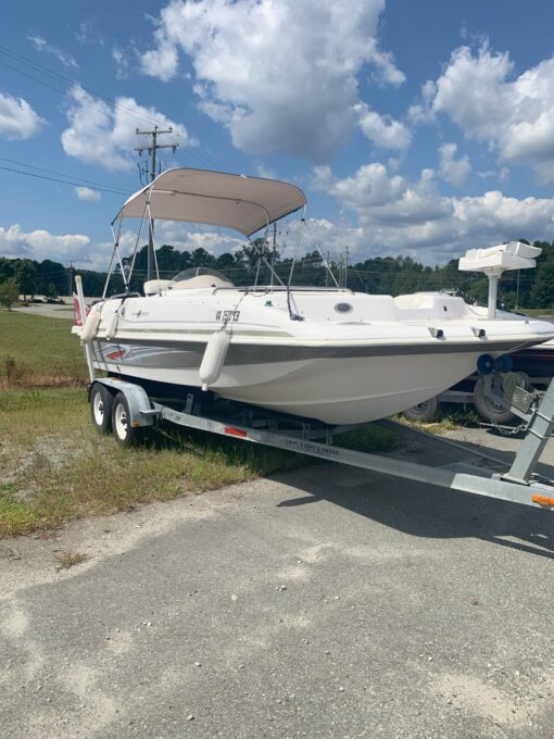 2012 Godfrey Sundeck Sport 201 with a 4.3L/220Hp Inboard Outboard Mercruiser. This boat comes with a 2011 Single Axle Wesco Trailer
