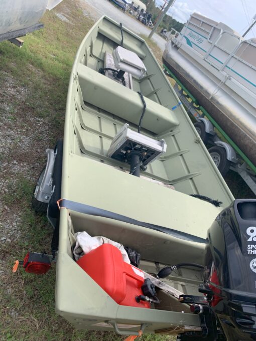 2023 1436 Lowe with a Tohatsu 9.9 Fuel Injected. This little boat is water ready and is the perfect vessel to take out to enjoy a nice fishing day. Includes two gas tanks and trailer.